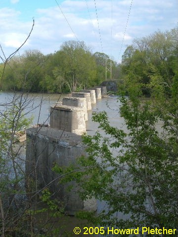 The seven Union Traction bridge piers north of Kienly Island at Logansport, Indiana photographed on May1, 2005